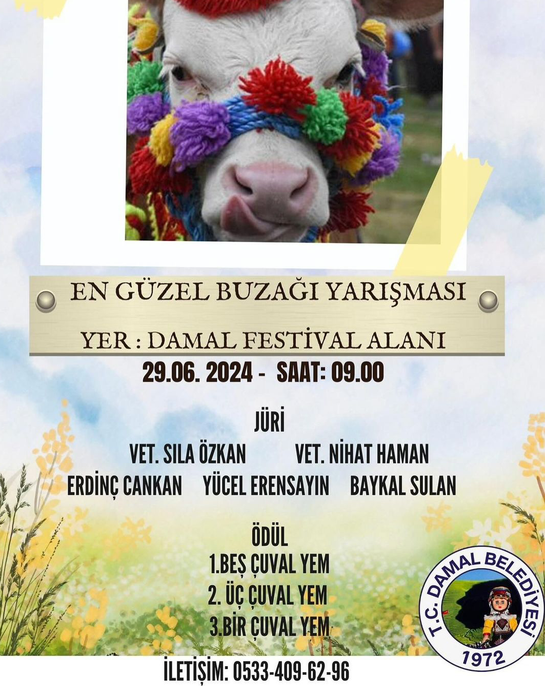29 Haziran'da gerçekleştirilecek olan 25. Atatürk'ün İzinde ve Gölgesinde Damal Şenlikleri'nde, En Güzel Buzağı Yarışması coşkuyla gerçekleştirilecektir. İlk üçe giren yarışmacılarımıza ödülü verilecektir.