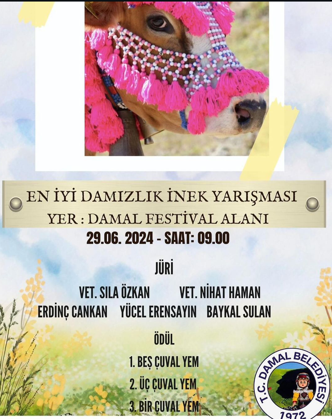 29 Haziran'da gerçekleştirilecek olan 25. Atatürk'ün İzinde ve Gölgesinde Damal Şenlikleri'nde, En İyi Damızlık İnek Yarışması coşkuyla gerçekleştirilecektir. İlk üçe giren yarışmacılarımıza ödülü verilecektir.
